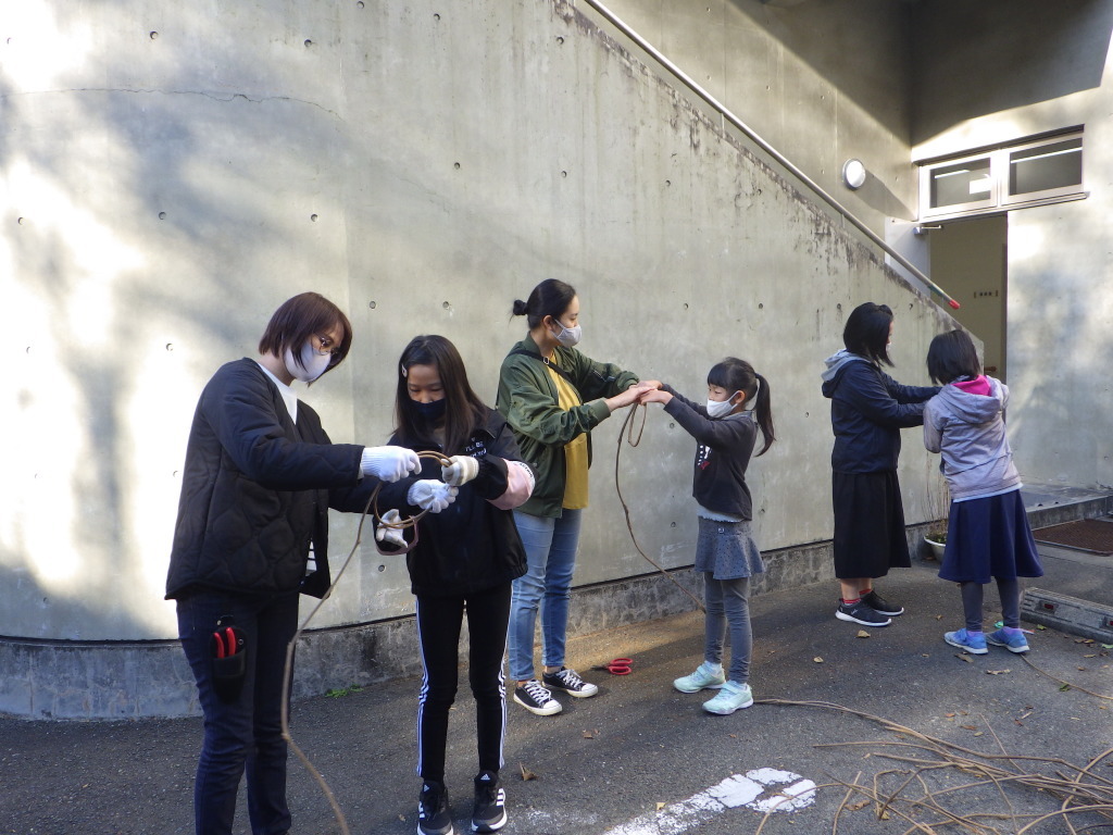 12月1日(日) 親子で一緒にクリスマスリース作りをしました。 毎年応募が多い人気の教室で、今回は16組35名の親子です。 まずツルで土台となるリースを、お父さんお母さんと協力して一緒に編んでいきます。 思い通りの大きさと、丸を作るにはな…