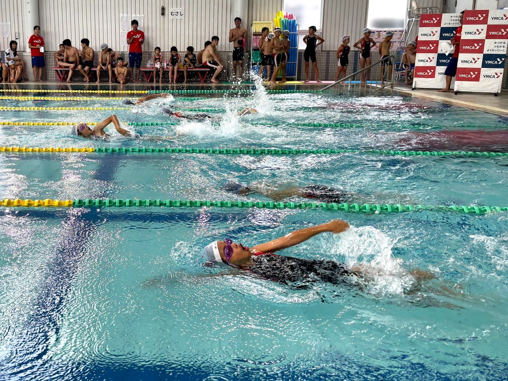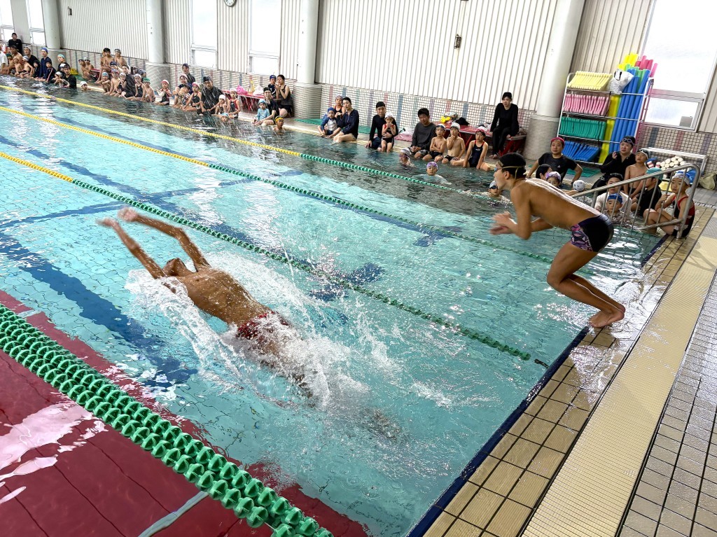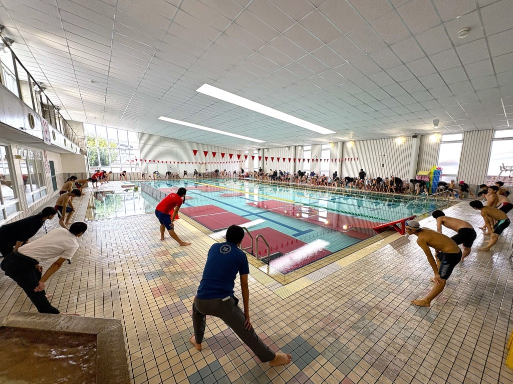 午前中の水泳記録会では、みなみグローバルコミュニティセンター、ながみねファミリーセンター、むさしグローバルコミュニティセンターのメンバーが一堂に