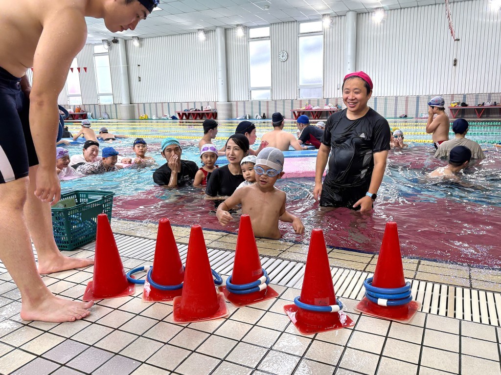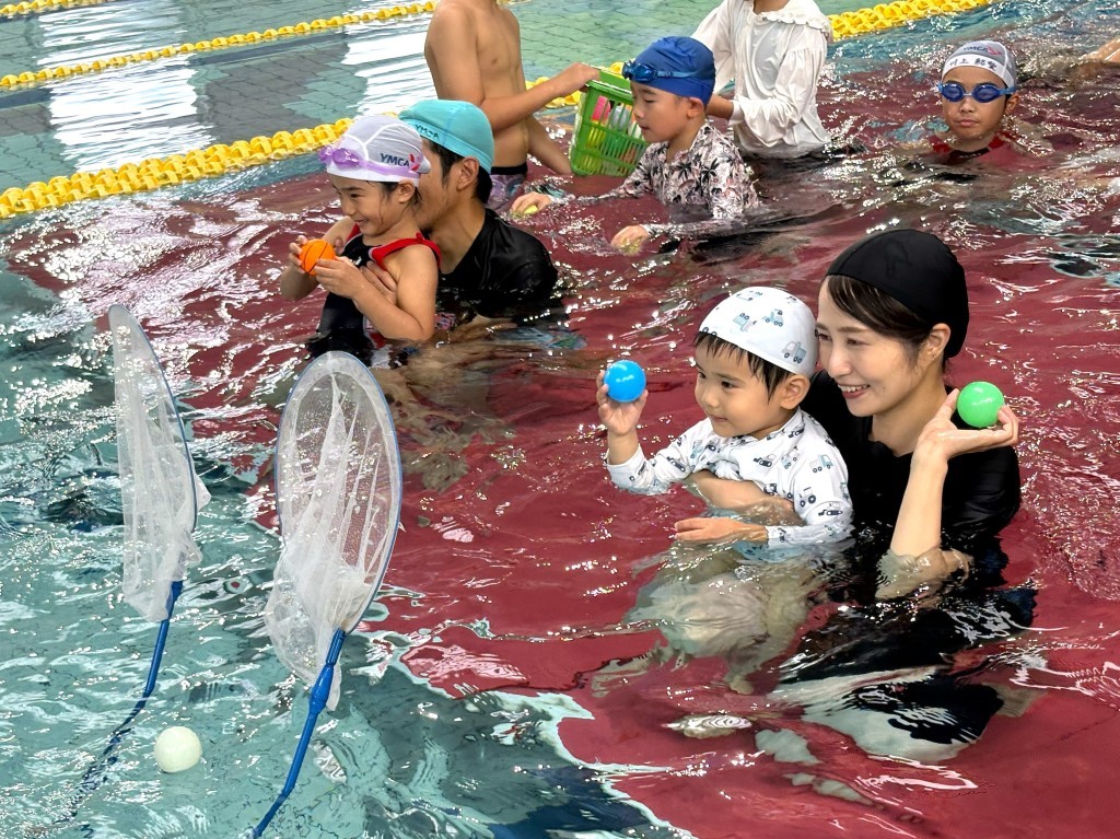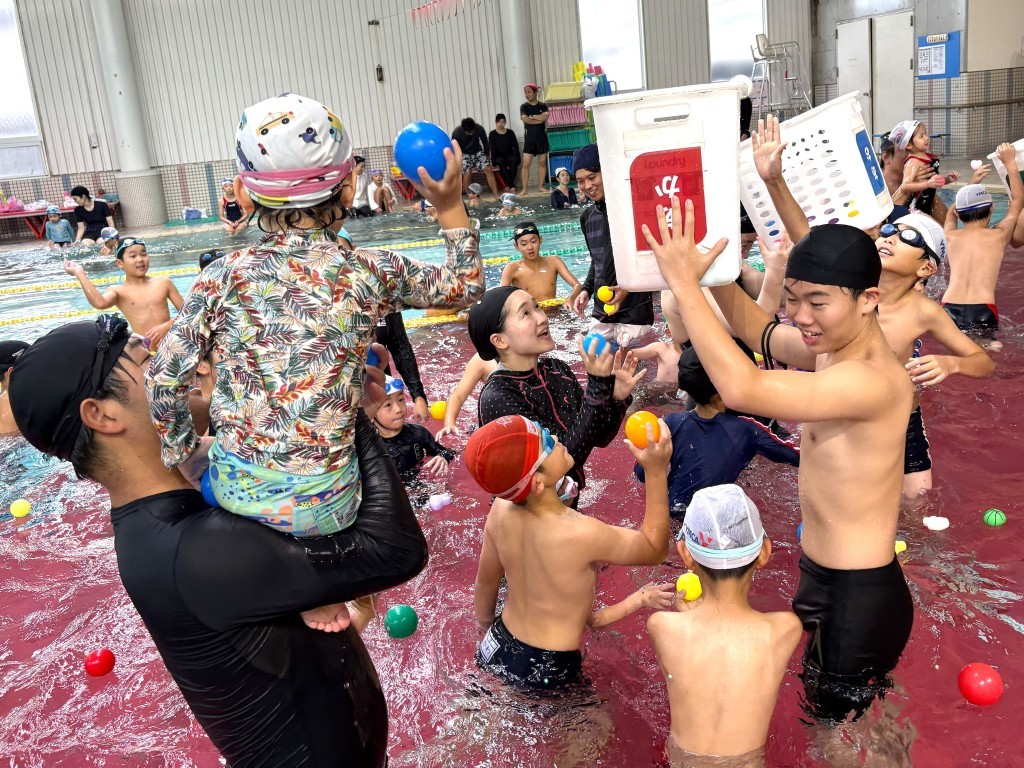 6年ぶりに開催した午後の水中運動会では、水泳教室在籍生をはじめ、初めてYMCAのプールに入った子どもたちや保護者の方々が、ファミリープログラムとして、水中サーキット・玉入れ・宝さがしなどにチャレンジしました。とっても楽しそうな子どもたちはもちろん、ご参加いただいた保護者の方から「親子で参加できたことで特別感があってとても素晴らしかったです!」と嬉しいお言葉をいただきました。これからも地域の皆様に楽しんでいただけるプログラム開催を続けてまいります。