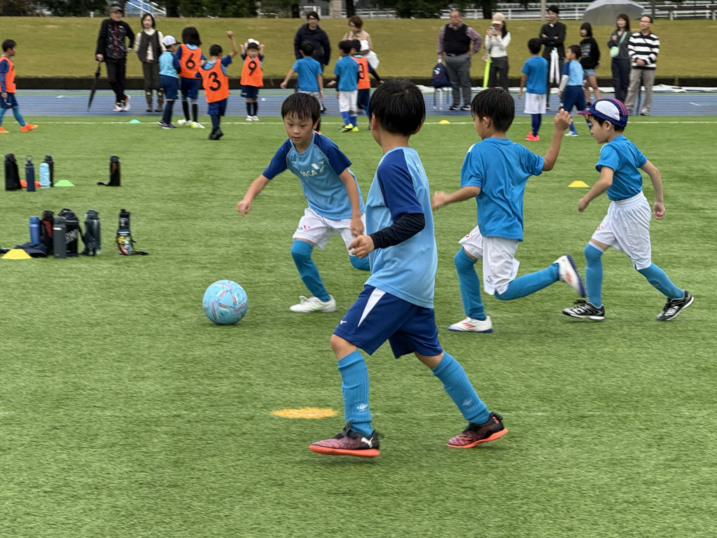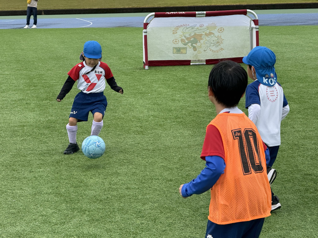 幼児~小学生の年代の子ども達が同時にサッカーを楽しみ、試合をするお互いのチームをリスペクトしあいながら試合に臨んでいました。