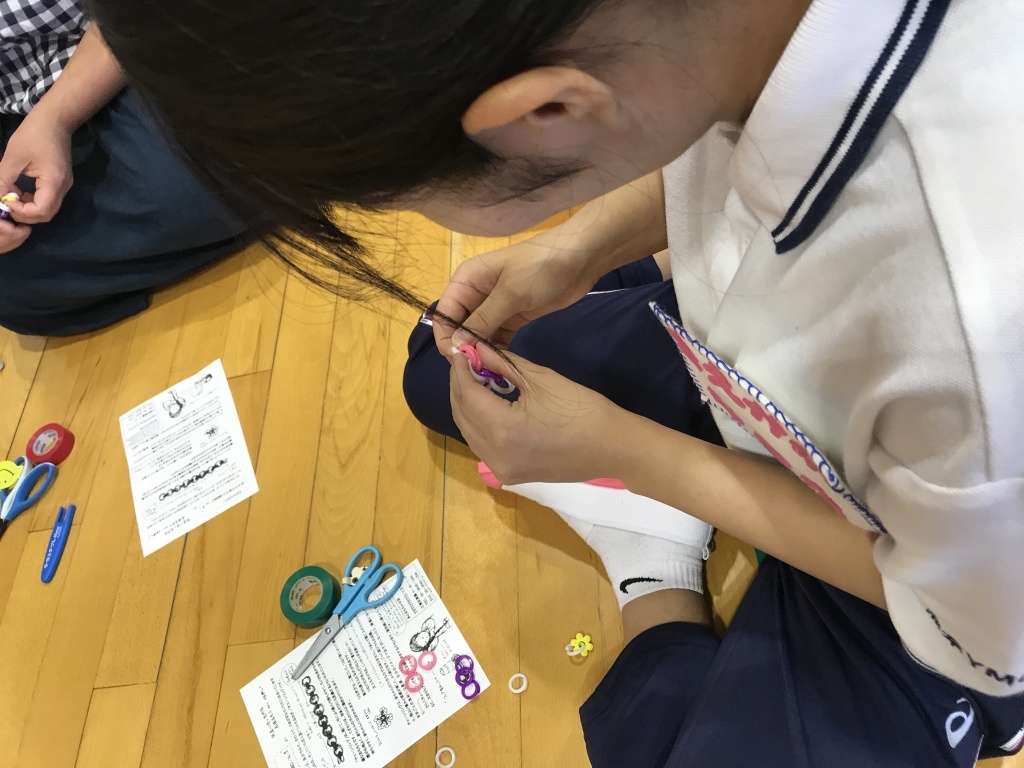 6月24日(月)、1年生は、YMCA水前寺幼稚園で手作りおもちゃの制作をしました。